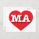 Este cartão-postal apresenta um coração vermelho vibrante contendo as MÃES em letras maiúsculas, brancas e em negrito, a abreviação oficial de Massachusetts, o estado da baía. O reverso do cartão postal é vazio, aguardando seus sentimentos manuscritos ou texto personalizado.