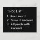 Lista de Tarefas Pendentes: 1. Comprar espada 2. Diga-lhe gentileza 3. Pessoas matares com gentileza