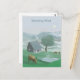 Uma casinha acolhedora no campo das Montanhas envolta na névoa matinal da arte serena por Anna Casey Art Postcard para enviar a um amigo Mude as palavras se preferir