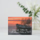 O cartão-postal das citações cristãs inspiracionais retrata uma fotografia natural que inclui um barco e um esgoto com um belo pôr do sol ouro sobre a água. Apresenta a Bíblia Verse Matthew 4:19, "Jesus disse, "Siga-me, farei de vocês pescadores de homens." A oração de saudação pode ser personalizada para os detalhes de sua escolha.