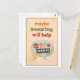 This is a postcard in the style of a cutout paper collage that reads, "Maybe swearing will help."