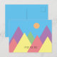 cartão postal com estilo mcm simples de arte de montanha, com formas cortadas simples em amarelo roxo no céu azul com cores brilhantes cor laranja do sol editar texto facilmente, Você pode TRANSFERIR este DESIGN em outros produtos Zazzle e ajustá-lo ao ajustado da maioria dos itens do Zazzle.