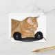Tabby cat laranja/gengibre com um receptor de telefone antigo como se estivesse conversando com alguém ou esperando por aquela chamada especial. Um bom lembrete para manter contato para amantes de gatos
