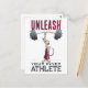Um meerkat halterer num cartão postal. Use "Personalizar este modelo" para ajustar o texto "DESLIGAR SEU ATLETE INTERNO" e criar um item exclusivo e personalizado. Apresentando um desenho fofo de um meerkat magro em shorts grandes, sorrindo enquanto ele levanta sem esforço uma enorme campainha com um dedo. Espalhe algum estímulo com este levantamento de pesos e emita o cartão temático.