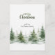 Uma design de Natal festiva apresenta um design minimalista com uma ilustração aquática de árvores verdes em baixo, feitas em tons de verde-floresta, verde-azeitona e cinzas-luz, criando uma paisagem serena de inverno. As árvores são representadas com texturas macios e tons variados, adicionando profundidade e dimensão à cena. Os flocos de neve caem suavemente entre os galhos, melhorando a atmosfera da vitória. O fundo é branco claro, fornecendo um olhar limpo e desajeitado que enfatiza os elementos centrais. A design exude um humor calmo e comemorativo, adequado para expressar saudações sazonais.