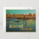 Esta encantadora cena de água de vintage mostra o porto com barcos galore em Melbourne, Austrália.