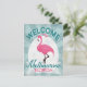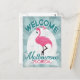 Melbourne Flórida flamingo rosa. No estilo de pôsteres de viagem vintage, diz "Bem-vindo a Melbourne, Flórida" em rosa, branco e verde turquesa menta.