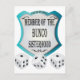 Aqui está uma design gráfica azul, preto, cinza e branco divertida para os jogadores Bunco ou Bunko. As palavras United We Roll estão no topo deste design emblema. No meio estão as palavras "Membro da Irmandade Bunco". Os dados apresentados são três. presente ou prêmio de excelente. Também faz um design de grupo de excelentes.