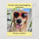 Todos gostam de uma boa piada, especialmente cães! Este cartão-postal mostra uma fotografia de um ouro risonho que está vestindo óculos de sol e pergunta, "Eles permitem risadas no Havaí? Ou apenas um-lo-ha?" Texto personalizável nas costas diz, "Hardy ha ha!"
