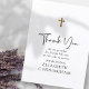 Este design simples e clássico é composto por tipografia serifada e cursiva sobre um fundo branco simples com uma cruz de falso ouro.