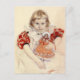 Vintage Carl Larsson desenhando uma criança sueca loira segurando uma boneca vestida de inverno.