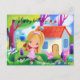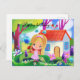 Cartão Postal Menina de desenho animado fofa e casa de fada