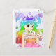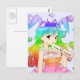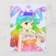 Cartão Postal Menina do Anime do coelho do arco-íris