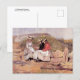 Um cartão postal de belas-artes com a aquarela de Winslow Homer, um artista americano do movimento realista, Meninas com Lagosta (1873) - também conhecido como Filha do Pescador. Uma paisagem à beira-mar com um grupo de meninas olhando para uma lagosta.
