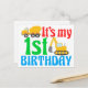 Cartão Postal Menino de 1º Aniversário Veículo de Construção Fof