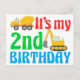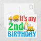 Convite de cartão postal de 2º aniversário de veículo de construção legal para uma criança que gosta de carros e caminhões. Desenho de escavadeira e caminhão basculante fofo para uma criança que gosta de veículos. Use esses cartões para convidar outras crianças para uma festa para um menino de dois anos.