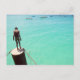 Foto colorida de um menino olhando para a bela água turquesa do caribe