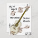 April é Mês Internacional de Violão. Este produto exibe uma guitarra com música e notas. As palavras: Mês Internacional do Violão são impressos a preto no centro do item enquanto a palavra abril é impressa a preto no topo à esquerda. Você conhece alguém que gosta de tocar violão? Que tal todos trazerem sua guitarra e fazerem uma grande festa de violão em algum momento do mês de abril?