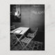 Fotografia em preto e branco de mesas e cadeiras de café fora de um café em Paris.