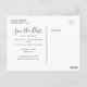 Um casamento com o design de escrever manuscrito elegante, "mesma data de amor diferente", salve o cartão de aviso de data. Envie seus cartões salve a data como casal recém-engajado para seus amigos e familiares usando este cartão postal bonito e simples, salve o cartão postal com um design de sobreposição de texto branco com script de escrita manual. Design por Elke Clarke©. Substitua a foto da amostra pela sua. Adicione suas informações pessoais na frente e atrás.