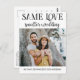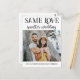 Diga a sua família e amigos que, devido às circunstâncias atuais, você está redimensionando seu casamento para uma cerimônia menor e íntima, com este cartão-postal moderno e elegante. Adicione uma de suas fotos favoritas à frente do cartão, com a frase "O mesmo amor, casamento menor" e "Nós reduzimos nosso casamento" em fontes negras modernas. Na parte traseira do cartão postal, você pode adicionar seu endereço de devolução e personalizar sua mensagem com mais detalhes e seu endereço de casamento para mais atualizações.