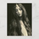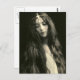 Fotografia antiga de uma jovem mulher com cabelos muito muito longos, uma expressão séria no rosto enquanto olha para baixo e uma pequena faixa de metal na cabeça