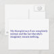 Minha terapeuta diz que sou completamente normal e o fato de que ela é imaginária não tem nada a ver com nada.