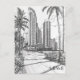 Este viagem, no estilo de desenho desenhado à mão, mostra uma vista dos skylines de Miami.