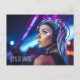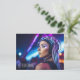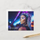 Fotografia de uma linda jovem no estilo cyberpunk num programa de EDM ao ar livre em Miami centro. Feito com algoritmos generativos e Photoshop.