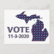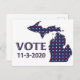 Encorajem as pessoas de Michigan a votar! Este cartão de posto amigável inclui a data da nossa próxima eleição e o charmoso impressão de estrelas sobre a silhueta do adorável estado de Michigan.
