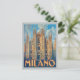 Volte no tempo com este cartão postal de viagens vintage celebrando o fascínio de Milão, Itália. A icônica Catedral de Milão (Duomo di Milano) é alta, a sua intrincada arquitetura gótica foi justaposta contra a vibração contemporânea da cidade. Capturar a essência da rica história de Milão e do talento cosmopolita.