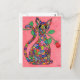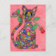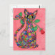 Cartão Postal Millefiori Cat com Rosa vermelha