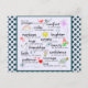 "Esta é minha oração para você: Conforto em dias difíceis, sorrisos quando a tristeza penetrar, arcos-íris para seguir as nuvens, riso para beijar seus lábios, pôr do sol para aquecer seu coração, abraços quando os espírito cederem, beleza para que seus olhos ver, amizade para iluminar seu ser, fé de modo que você possa acreditar, confiança para quando você duvidar, coragem conhecer-se, paciência para aceitar a verdade, amor para terminar sua vida." Com um fundo e bolinhas azuis/verdes em a maioria produtos e de roupa.