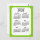 Cartão Postal Mini calendário verde amarelo 2026, 6 meses, por J