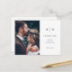 Este elegante e moderno obrigado de casamento que vocês postais apresentam um simples design de texto preto e branco que exude o estilo minimalista, com sua foto de casamento pessoal favorita. Adicione suas iniciais ou monograma para torná-las completamente suas.
