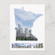 Qualquer um adoraria receber este cartão postal viagem com Minneapolis, linha do horizonte da cidade do centro de Minnesota num mapa-recorte do estado de Minnesota!