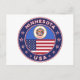 Crachá de Minnesota com bandeira de Minnesota e bandeira dos EUA cores, forma arredondada. Emblema de Minnesota. Selo de Minnesota. Coleção dos Estados Unidos.