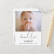 Cartão com fotos minimalista manuscrito para anunciar o nascimento do seu novo bebê para o mundo. Totalmente personalizável com a fotografia do seu bebê, o nome, as estatísticas de natalidade e outros detalhes. Cores totalmente editáveis.