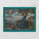 Pintura vítrea de mulher com cabelo comprido olhando para fora do mar. Um navio caiu na tempestade e está se separando. Belas artes pelo artista inglês John Waterhouse.