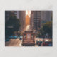 Esta é uma fotografia de um teleférico a caminho de Mission Street, pouco antes de atravessar Stockton, em São Francisco, Califórnia.