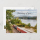 Cartão postal pensando em você com uma foto mostrando o rio Missouri, trilhos de trem e a ponte Jefferson City em Jefferson City, Missouri. Isso foi tirado durante a temporada de outono.