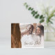 Esta elegante horizontal que salva a data do cartão-postal apresenta uma cor d'água marrom mocha, borda agitada com falso brilho dourado. Substitua facilmente a imagem de exemplo por sua própria foto. O texto personalizável combina o script de escrita manuscrita marrom e o tipo de letra da placa; um filtro de gradiente branco ajuda a fazer o texto pop. Adicione seu endereço de devolução e detalhes adicionais ao lado inverso.