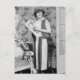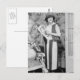 Foto antiga de 1920 de mulher com revista estilo e tacos de golfe, vestindo a moda feminina do dia.