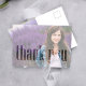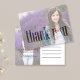 Este design apresenta um modelo de cartão postal de agradecimento de graduado, com design de tipografia legal, um modelo de 2 fotos moderno, elegante e tendência, com agradecimento simples, um cartão postal simples ótimo para cartão de agradecimento de ensino médio ou faculdade.