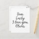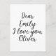 Modelo de texto personalizável fofo: Querida Emily, eu te amo, Alexander. Clique em editar e altere apenas os nomes ou todo o texto.