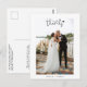 Simples cartão postal de amor e agradecimento com caligrafia em estilo script e pequeno coração. O verso apresenta seu endereço de retorno e mensagem de agradecimento.