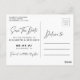 O casamento moderno salve a data do cartão postal com o script de tipografia ''nossa aventura começa'' em letras de tendências, nomes, data de localização e foto na frente. Personalize ainda mais sua mensagem e detalhes no verso.