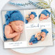 O Moderno Elegante Script De Caligrafia 4 Foto Collage Baby Boy Obrigado Postcard. Apresenta um belo obrigado de caligrafia manuscrito que você muda o script de fonte de cauda e sua mensagem pessoal. Fácil de personalizar com suas fotos e detalhes de bebês.