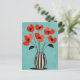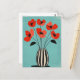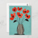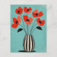 Flores vermelhas popidas se rompem acima das listras do vaso lacrimogêneo em um fundo bege neutro e macio — ousado mas balanceado.
