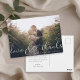 Obrigado personalizado de fotografia de casamento, seu cartão postal com "amor e obrigados" moderno e elegante design de caligrafia manual. Personalize com a sua foto de casamento e agradeço as notas.